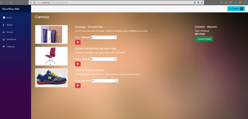 Uma loja virtual usando o ASP.NET Core Blazor WebAssembly consumindo por uma ASP.NET Web API.
